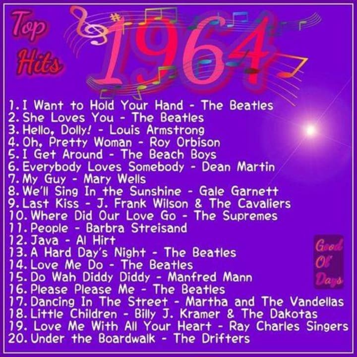 So, on our good old black and white tv with rabbit ears for antennae, I would tune in to my favorites like, "Bewitched" and comedian Rowan & Martin's "Laugh-In." And that's where I watched the British invasion of the Beatles on the "Ed Sullivan show." They would hold five top singles on Billboard's Top 40 in 1964! Every girl had their favorite Beatle and every parent hated those long-haired hippies. But their songs were amazing!