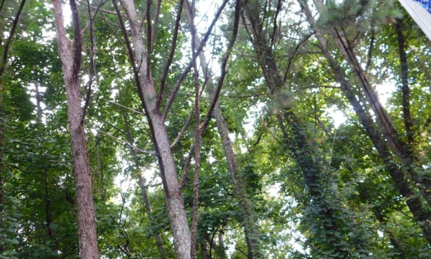 I stretch my body along the branch, putting my feet up against the trunk of the tree. For a while, I just lay there and let my eyes follow along with the dancing leaves above me. Sometimes, I like to think back to the day I found this place. It was raining, it had been hot the previous days so the cool drops felt incredible. No one was out, not even on their golf carts. I had finished some homework and it was only a few minutes past 4 in the afternoon, I had needed to stretch my legs and just walk for a mile or so. Each time I go out, I try to go a different way every time to purposely get lost. I was about a mile and a half out when the path just suddenly stopped. I had stood there for a minute debating whether to turn around, so I started to walk back the way I had come. Not too far from the dead-end spot, my eye caught an object that stood out amongst the rain-soaked leaves. I walked towards it to try and figure out what it was. I ended up having to walk a little past the trees to get to the object, it was an origami sailboat. I picked it up and realized it hadn’t been damaged by the rain, weird. I almost turned back around but saw that there was a kind of opening further in. So I went deeper and found this place.