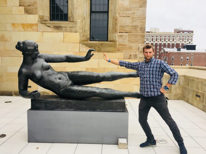 New Haven has opened its flawed but beautiful arms to me: So, I will say thank you to my town. Thank you for letting me exhibit in several cafes and galleries. Thank you for your brilliant instructors that taught me forms of aerial and hot yoga—and for aligning me with new friends. Thank you for the intellectuals and luminaries I’ve met, throughout their esteemed pursuits. Here, I’ve crossed paths with more rabble rousers and eccentric people than my real hometown will ever know. Though I’ve had cars broken into— and a previous living space burgled—I’m still trying to carve a path through you, New Haven. I’ve been to your court rooms and your concert halls. Despite occasional frustrations, you continue to enchant me. And I look forward to more surprises.