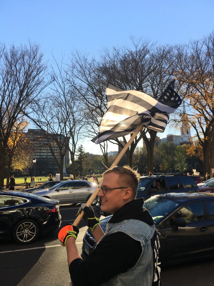 Anti-Trump protester near New Haven Green, 2016