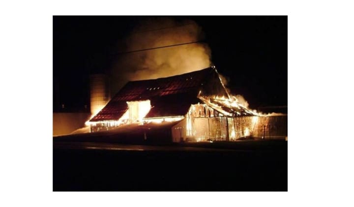WOOSH, sounded an explosion behind us ─ da barn goin’ up in flames.