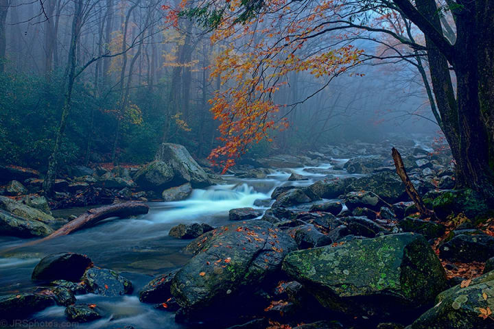 “RUN! “ yelled tiny person, bouncin’ cross da river off da rocks like they’s weren’t even there. Harrible tried ta guide me ‘cross, but I’s missed a step and fell into da water ─ my head hittin’ a sharp rock.