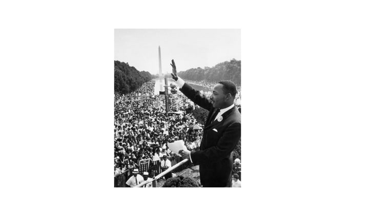 “Bet you’ll never forget this first date, Maya,” said da man standin’ next ta her. He pulled her hand to his heart. “Listening to Dr. King speak, calling for our civil and economic rights and an end to racism.”