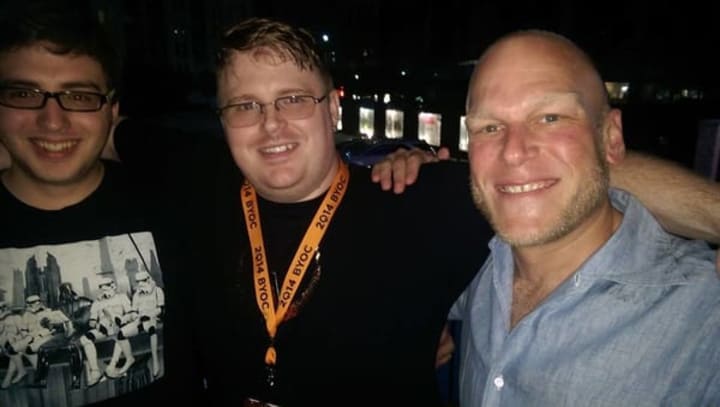 JesstheKing, myself, and Adam Sessler during QuakeCon 2014 [Credit: Blast Away the Game Review]