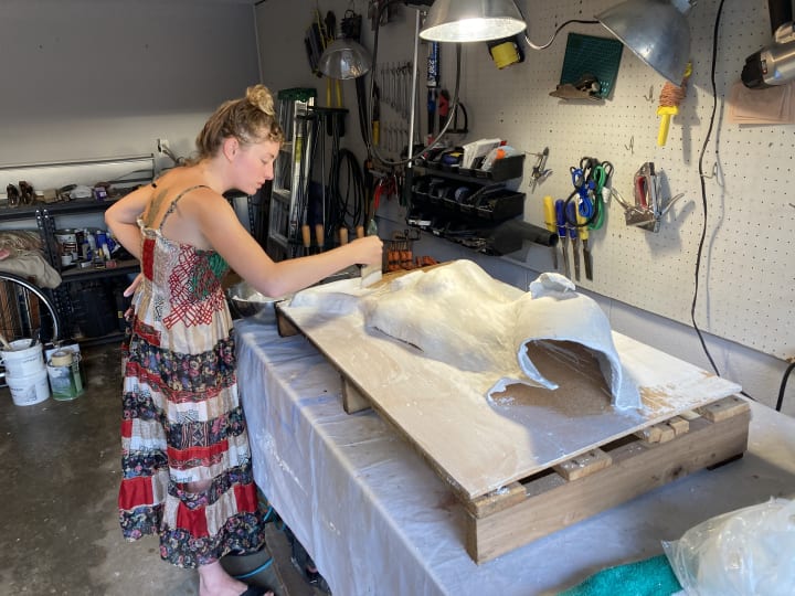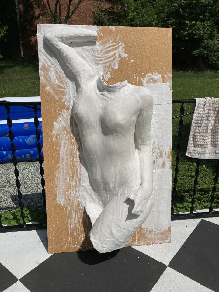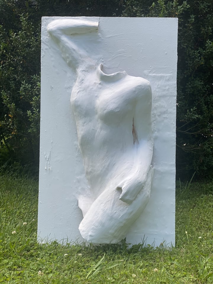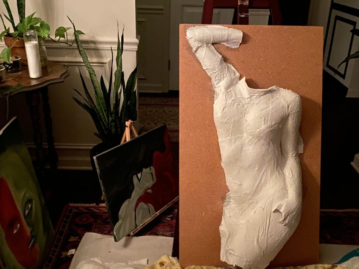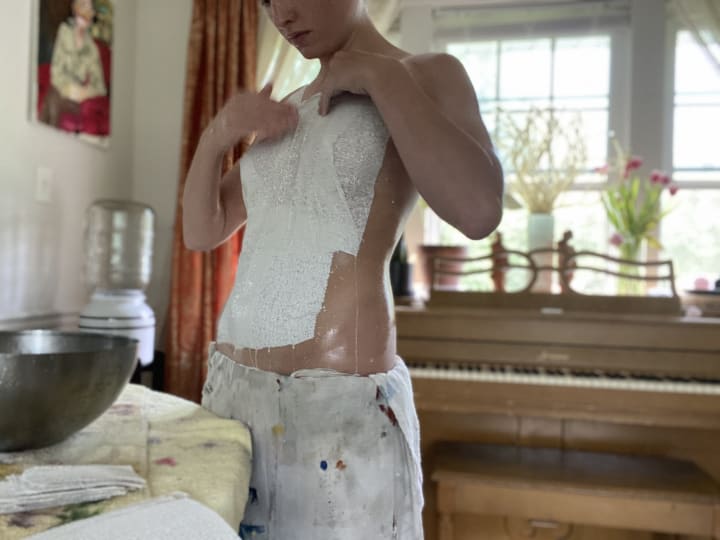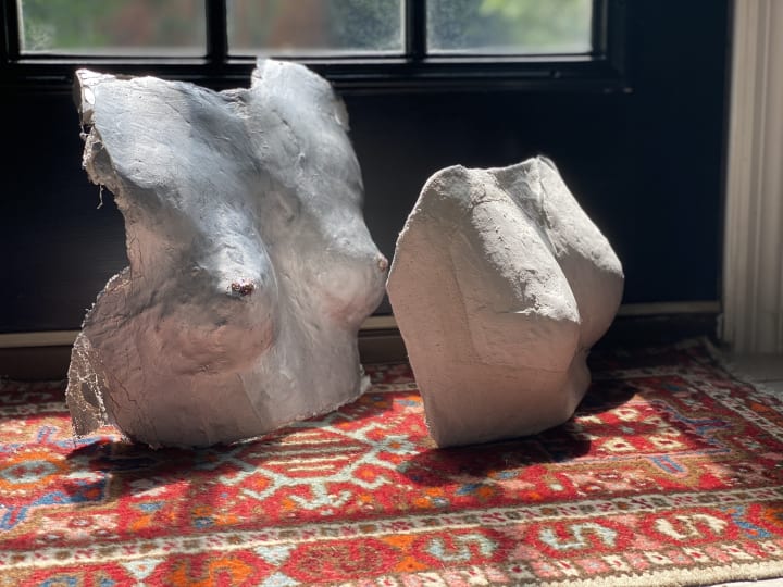 On a particularly sunny day, we sat on the patio as I plaster casted her body. I thought she looked great, healthy, although I knew what was weighing on her heart. That day, we made a marker. Her body mold signified the existence of a demonstrously difficult and specific period of her life. Since that day, fast forward years later: She's started her own business, cut out toxic friendships, and managed to relieve herself from all negative health matters.