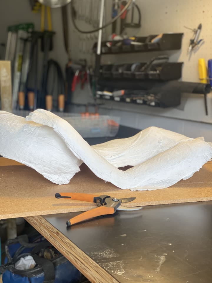 Mold-making is a lot like life: a multi-step process. First the initial mold must be created. The rolls of plaster must be cut into strips and while that's in process, I have the model (usually friends or friends of friends) use olive or coconut oil on their skin: this prevents the finished mold from sticking to any body hair during cast removal. After that, I fill a bowl with warm water, submerge one plaster strip at a time, and away we go!