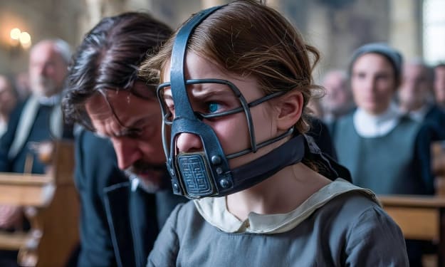 Joanna immediately rushes to hide while she has a breakdown. Meanwhile, Anna keeps finding her husband staring at Joanna's bare body and calls him out, so the reverend slaps her. This doesn't stop Anna from calling him sick, causing the reverend to hit her with his belt in the middle of the house, where Joanna can see it. Whenever her parents aren't home, Joanna brings food to the men recovering in the barn. Wolf uses the chance to go to the privy and Samuel asks Joanna for some rope. Seconds later, Samuel inserts a noose through a hole in the privy and starts strangling Wolf while Joanna watches. A desperate Wolf tries to defend himself by opening fire, but none of the shots land and Wolf dies. Afterward, the body is fed to the hogs. Samuel tells Joanna that he had to kill Wolf before he killed them first. He also advises Joanna to be more proactive and not submissive like her mother. In town, the reverend pays the blacksmith to design a special metal piece. This is put in Anna's mouth as punishment for being a bad wife. The next day at church, Joanna tells her mother that she shouldn't let the reverend treat her like this, claiming that the end would be better than abuse.