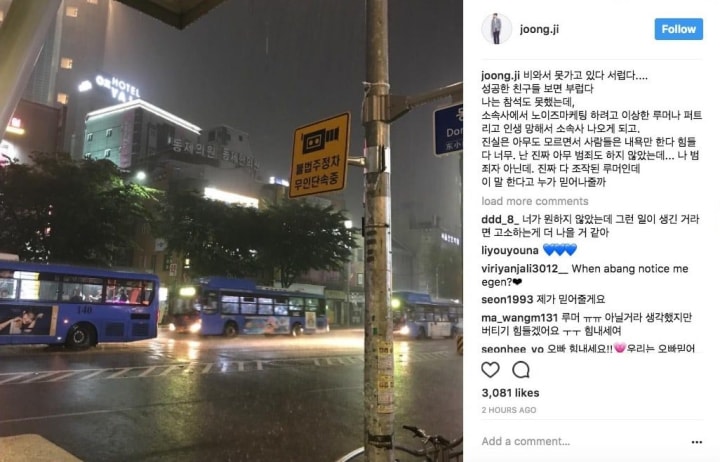 Joongji later posted a message on his SNS pleading with people to quit sending him rude and threatening comments. He admitted that the company made up the sexual assault drama just to get Joongji's name out there. Of course, that backfired. Wayz Company retaliated by filing a lawsuit against Joongji for defamation.