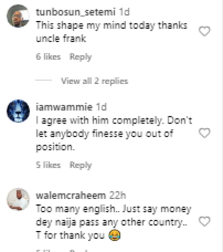 What do you think about what Frank Edoho had to say? Your matter to me, so please share them in the comments below, or on my Jide Okonjo Facebook post. Let's keep the conversation going and I can't wait to see your thoughts on this.