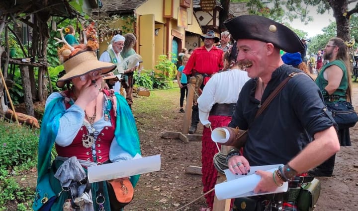 As I headed back to the Riddle Masters, I passed through the Shepherds Green and saw a 'deer cousin,' someone in faun garb with a bunch of other people. I was unaware of the time of day, but it turned out that they were waiting for the fantasy costume contest. I told them and the other awaiting patrons some jokes and some quasi-trivia to make them all laugh. I chit chat with several more people and wish them all luck in the fantasy costume contest, but one of them especially, they know who they are. I truly did not mean any one of them imparticular, but let them all think I meant them.