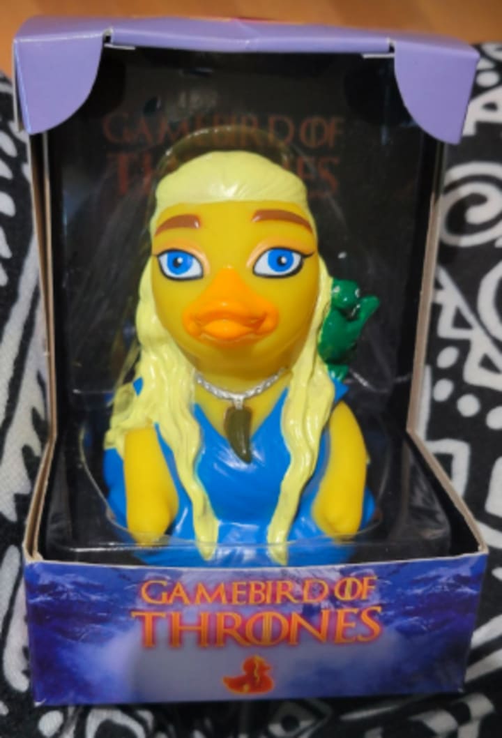 This... because of course he does. Why wouldn't he? While we are not that close, we are in a group of friends that is known for exchanging small gifts and favors for fun. Rubber ducks are part of it and he knows I have cosplayed as Daeneryes Targaryen on no fewer than three different occasions. Including a burlesque performance. I give him a small token I have with me in return and sprint the last little bit back to the booth. I ask Medestar, "Did I make it?" He tells me, "You did it... in eleven minutes."