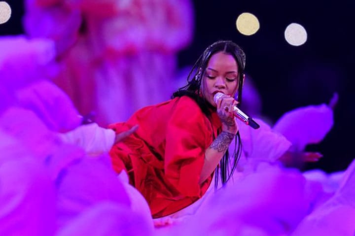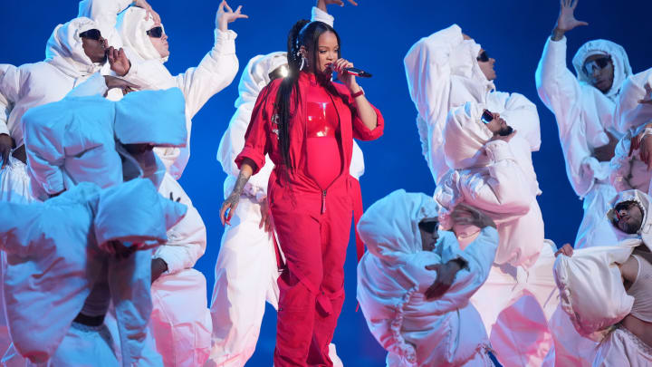 Instead, the superstar made her comeback performance (it’s Rihanna’s first since the 2018 Grammys) atop seven platforms suspended anywhere from 15 to 60 feet above the field. And while the LED-lit platforms, which were arranged in different positions as the singer moved through hits ranging from “Bitch Better Have My Money” to “Rude Boy,” looked cool as hell, they also served a very practical purpose: They kept her off the grass.
