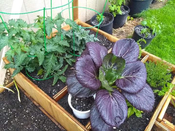 My green kitchen Aid scissors is now designated for the garden. Although I have no idea when or how it became mine, it is the older of the three and my first actually sharp scissors. Before the green scissors I would always go digging for decent scissors in my pile of scissors, most times I will try several at once before settling for one that will do a decent job.You see, I struggle from Akathisia, a condition I’m still thinking about today if it is a plus, or minus. Because of that, things get moved around frequently; things like scissors, slippers, remote, pens, will be missing for days, sometimes weeks before I find it again doing the same thing I was doing that lead to me losing it.I really put the green scissors to work summer of 2020, at the height of the lockdown.I live in what we called a survival shack.We moved in there with a plan to save money and study. Soon COVID is everywhere, the stories are no longer safe, everything started shutting down, the food is also no longer to be trusted. Stores were running out of supplies so I constructed a garden. Since I am a builder we went out looking for scrap wood to recycle. The first of the garden was a planter box built from wooden pallets, It was perfect, as the survival shack has no shed, garage or working place. The box was intended for herbs.. At the start of the virus we went shopping pandemic style, buying things like 40 pound Jasmine rice, 10 pounds different dried beans and peas, and various dried goods. Since the survival shack is really small, we are limited on storage, yet it seems we might need to bunker in for months. Fresh herbs I taught will always brighten things up.The box wasn’t too big for the space, 32inch by 24 inch deep and 10 inches wide, and I made two almost matching boxes using up two pallets found on the side of the road.Since we only have a Camry, the size of what we can haul is always questionable and limited. We realized that pallets fit okay in the car and if you do it right, you can put 2 regular pallets in a Camry, and that is without squeezing yourself out of comfort.We decided to drive around the neighborhood, and to my surprise, pallets are everywhere. Soon I had built around the original two boxes. The first plants were the herb sprouting in the kitchen, green onions and garlic. The soil was from a farm store, 2 organic bags full, which fit perfectly in the two boxes I made first.Along with the soil we also bought some young plants and seeds. The plant went in the box right away while some seed was prepped in a wet towel and placed in jars.Although the garden wasn’t the first place the scissors were used that year, Pak Choy was the first that felt the sharp blades of the green scissors in the garden.Unlike my grandma Meme, I like the feel of a chef knife, heavy, steel, a metal that has been sharpened and treated and sharpened again. I like the sound a good knife makes as it cuts through everything.At the start of the garden every plant was colorful, vibrant and full of life. The size of the finished garden was 9ft by 5ft. What to plant is critical and important, every space was used with different plants every few inches apart.We had cilantro, Italian Presley, oregano, different peppers, cucumber, carrot, radish, different tomatoes, ginger, just to name a few. This year the garden is so much smaller. I have onion, garlic and ginger that made it through the cold and many cloudy summer days of last year. Now the onion and basil have flowers. I have never seen an onion or basil grow to the extent of having seed, but am sure it is going to be a parting gift for whoever moves in here. The new garden is an upgrade and a downgrade from last year, too.Upgrade because I built a new garden with better wood and material, with a very rich soil. I also raised it up so when the plant grows it will give shade to whoever moves in. The downgrade is because the garden got smaller, but it is still a good size and will be full of good greens when they move in.If you ever grow Pak Choy, you will understand how hard it is to cut the first leaf, especially if it is your first time growing it. The plant was beautiful, huge purple leaves. I wanted to let it grow like a flower, but I have to eat. I also wanted to taste it, so my first meal with it was special. I cut 4 big leaves from the bottom of the plant and took it inside, (I still don’t have that heavy chef knife of my dreams, but for now my Kitchen Aid chef knife does a great job.)I like to make music, especially while I am cooking with the knife as my drumstick, chopping to the music. Depending on what am cooking or what I’m singing, I could cut a vegetable in chunks or I could smooth it up like a blender. I cut the Pak Choy up in three different songs, the first leaf went with some plantains I steamed, I had cut the leaf so it mixed in well with the plantains. The second was cut a little chunky and mixed in with the bowl of salad, the third was just ripped with my hand and put in the pot of soup. The last piece I ripped down the middle and shared with my friend, tasting Pak Choy for the first time.I started building a new garden with the plan to build something for all my neighbors, but a situation happened and we have to move. I still built five raised beds and hope the next guys can take care of it. For now, everyday I go out back. I always have to trim something, from the small bush of spearmint to the tomato or kale I planted. The sugar snap peas always need my scissors. The Pak Choy definitely also enjoyed the ends of my scissors.