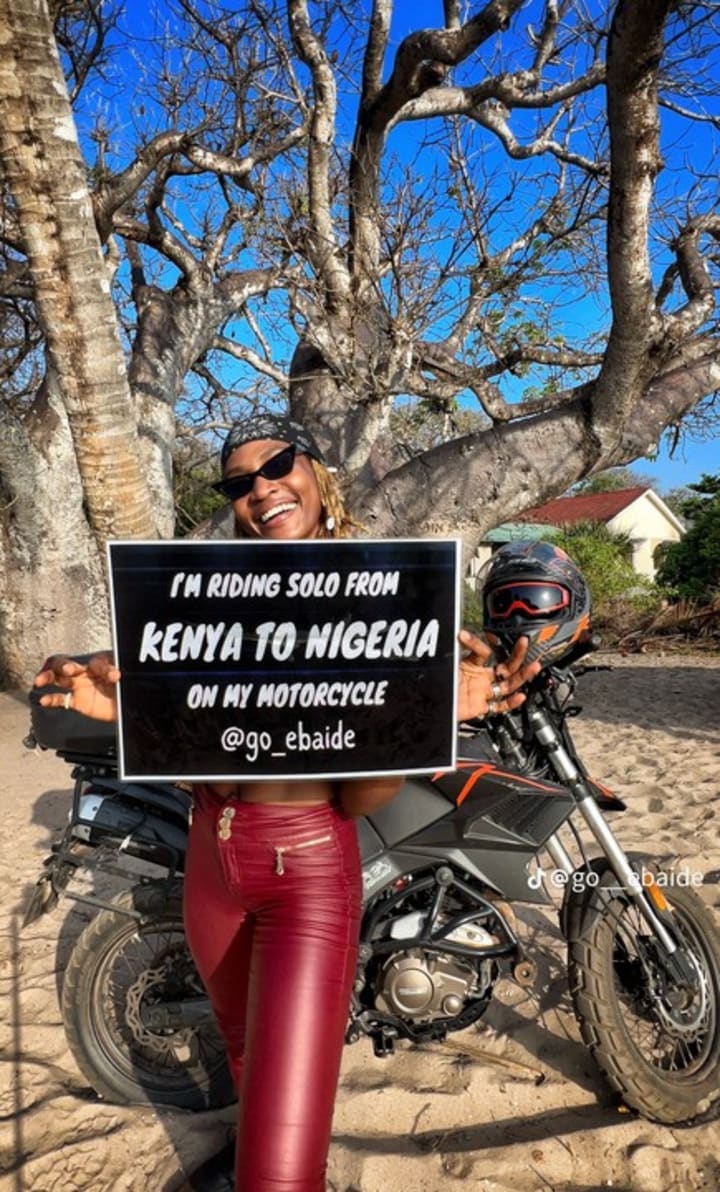 In 2024, Ebaide—a proud Nigerian woman, bold as the breaking dawn—became the first recorded Black African woman to ride solo across East and West Africa.