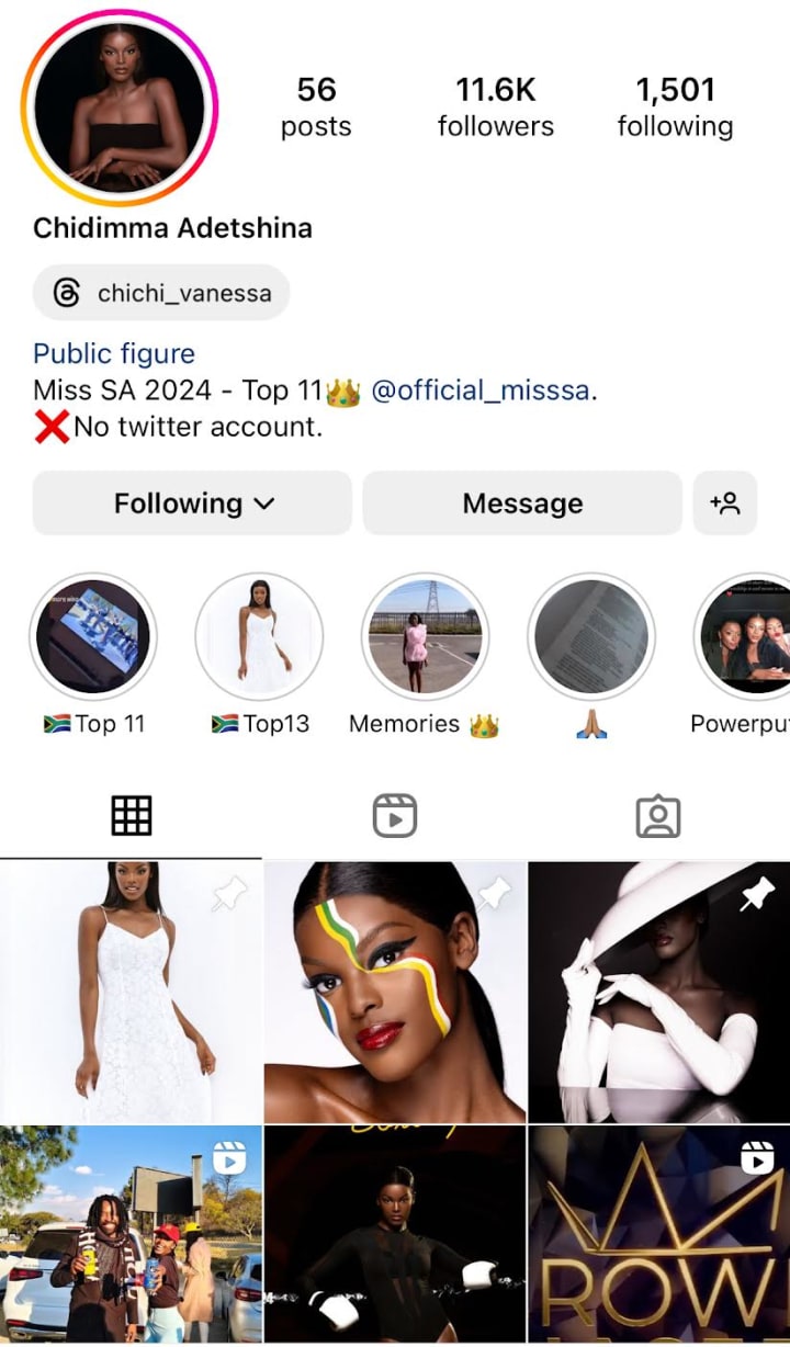 CHIDIMMA Vanessa Onwe Adetshina, a Miss SA top 11 contestant has been subjected to xenophobic and Afrophobic attacks on social media.