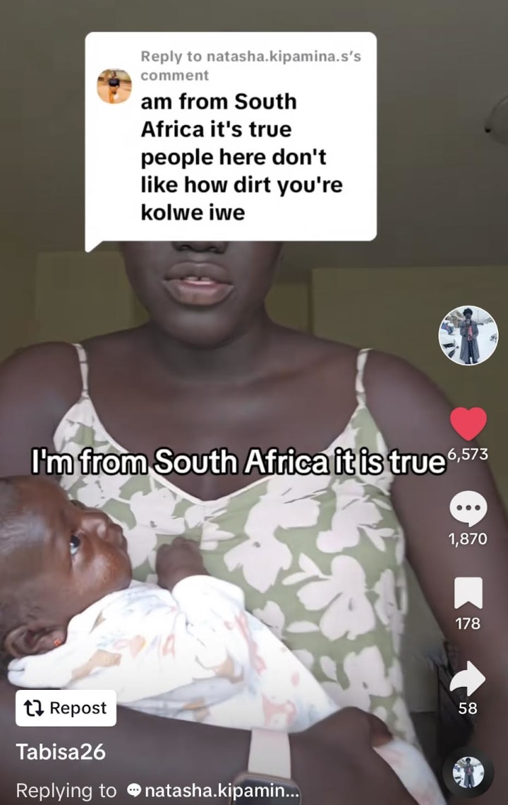 I was so angry from reading the comments left under her videos. She is almost at one million followers. Despite being from South Sudan, she's living in Canada.