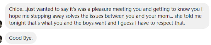 He came swooping in with flowers and ice cream dates. He was probably the most manipulative man I have ever met. When they broke up, she didn't even tell me. He did by sending me a Facebook message pretty much blaming me for their break-up. He approached it in a nice way but I was a sixteen year old. I went upstairs after and walked into her bedroom asking if they broke up. She asked me how I knew and I showed her the message.