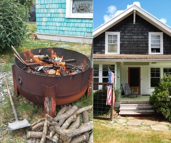 It was a lovely, long, early summer weekend full of blooming flowers, nightly bonfires, beautiful bonding with beautiful people, and good food. We walked on the beach and I splashed through the waves in my boots, wearing them for the second time. R played the banjo accompanied by her boyfriend C. We asked when an album was coming out. We were serious. They were serious and seriously talented musicians well known on the bluegrass circuit. Soon, they hoped.