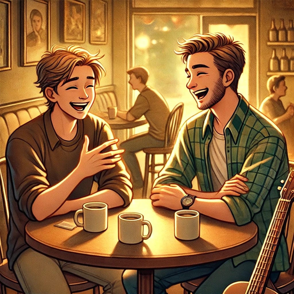Years later, fate had different plans. Jake had returned home for the holidays, walking through the old streets that held so many memories. He found himself outside the local café where he and Liam used to hang out. And there, sitting by the window, was Liam, strumming his guitar.