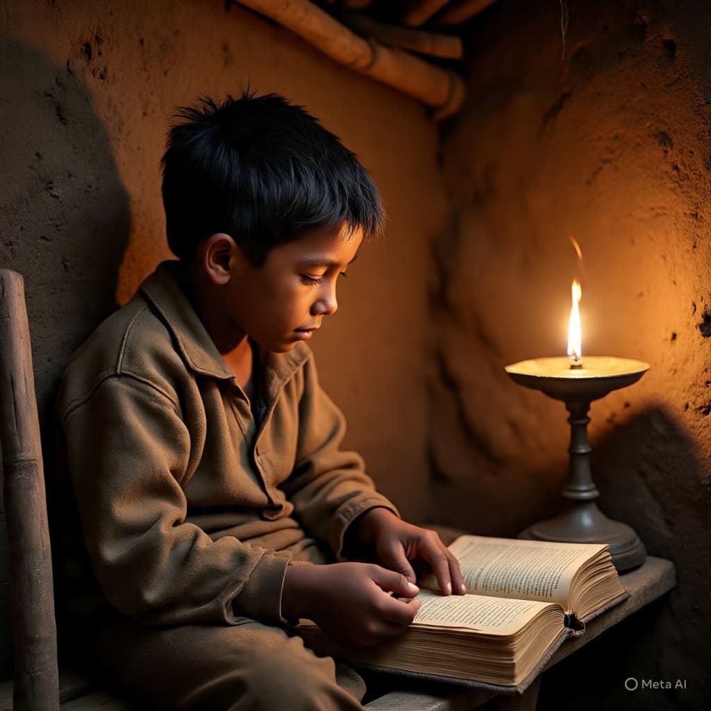 At school, he often felt out of place. His clothes were worn out, his shoes patched and dusty. Yet, when he opened his books, the world transformed. He devoured stories of scientists, poets, and leaders who had shaped history. These stories became his fuel, igniting a fire that poverty could not extinguish.