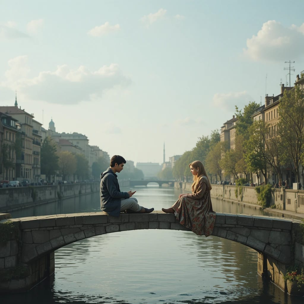 The river ran quietly under the old stone bridge, its waters reflecting the golden glow of the late afternoon sun. The city around it hummed softly, but here, the world seemed paused — the constant chatter of traffic and distant sirens softened to a gentle backdrop.