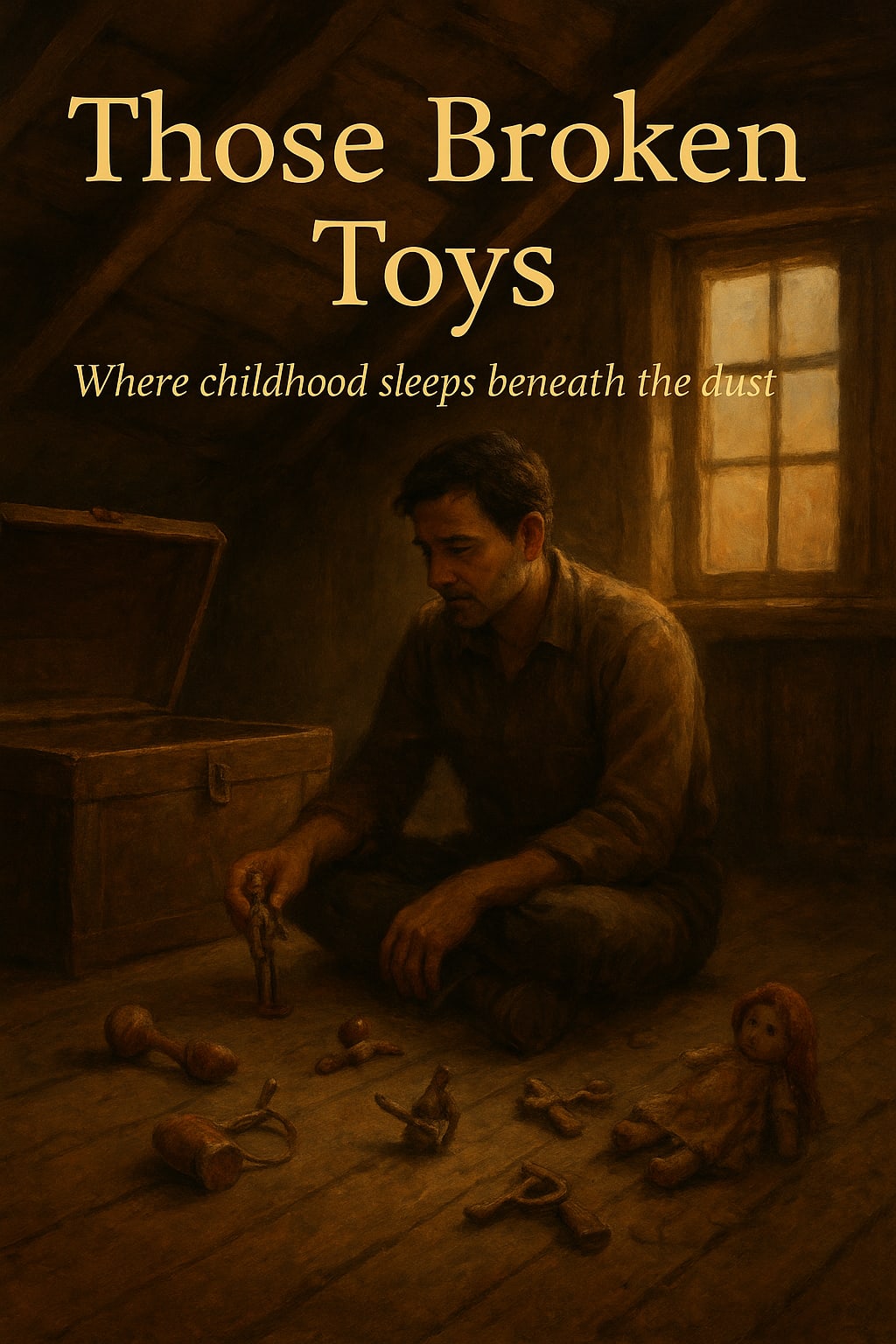 Still he gathered the toys back into the trunk, carefully, like sacred things. He didn’t know why—maybe for the next child who might open it or maybe just to remember that once; before life scattered everyone like seeds in the wind; he had been part of something whole. The trunk clicked shut. Outside the wind stirred the trees and somewhere deep in his heart, a spinning top danced one last time.