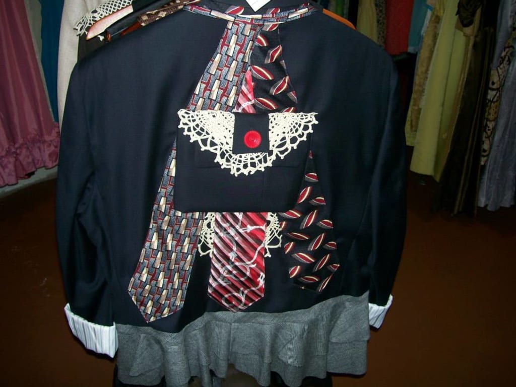 On a random weekend day one of my regulars came in and she shared that she was a seamstress….so the conversation began and I showed her my vest idea…..she took it home and came back in 1 day with a finished product. She was excited because she felt the same way about ties and how pretty they are but just going to waste. So we began designing vests, added the suit coats next and then small shoulder bags were created too.