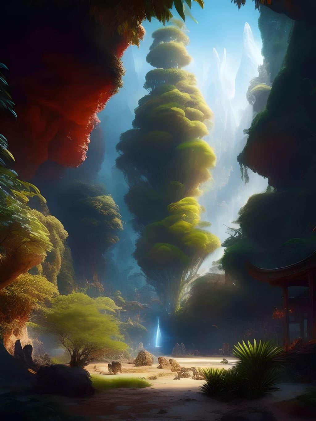 Beyond the island's golden beaches, a dense, ancient forest awaited their exploration. Its verdant foliage held secrets and dangers, enchanting the travelers with its ethereal beauty. Every step was a leap of faith, as whispers of long-forgotten civilizations reached their ears.