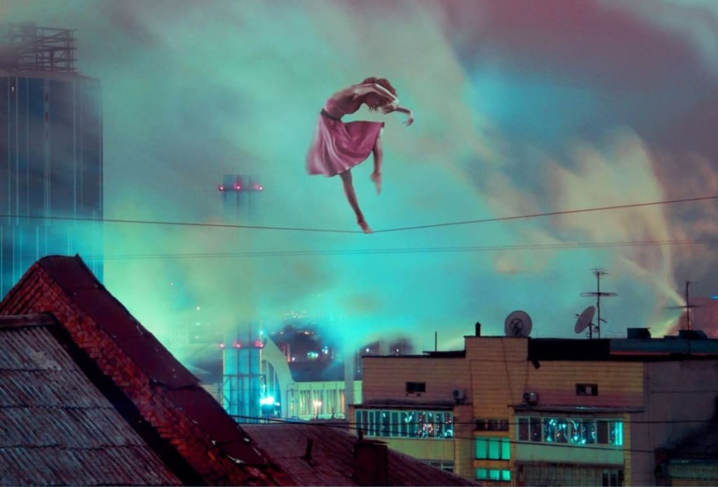 It's almost 3 AM and I haven't cried or smoked at all tonight. Not willing to stand my non-blurred vision or my non-ashen lungs, I head outside to rebel against my own form. As much as I revel in the shocked reactions of everyone who catches me smoking, I will not be caught crying. I head up to my roof and wait, something good should happen soon. This part of town is known for one thing and it's definitely not the quiet inhabitants. Lighting my cigarette and getting ready to break again I hang my legs over the side of the roof. It's so cold out here tonight that I can feel my hands going numb pretty quickly. I wish it was colder. Instead of a fight, however, there's only a girl wearing nothing but a t-shirt. jeans and black shoes walking down the sidewalk. She keeps stopping at telephone poles looking them up and down as if checking for any imperfections. As soon as the girl gets to the corner where she would leave my range of vision she starts climbing the last pole after checking it out extensively. I don't know what to think at first honestly; this seemingly normal kid, maybe around my age, started scooting her way up a telephone pole. By the time she gets to the top, I just want to know what she plans to do. Could she be trying to kill herself? Is she doing some out of the way tagging? No, she makes her way to the top and balances on the end of the pole curtsying while still looking straight forward. I don't even remember when I started crying but I felt the cold liquid slide down my face watching her gracefully wonder her way onto the wires. This girl was able to slide her way to the middle of the wire without getting her entire system reset by however many volts were running through it. As I stared, awestruck by this graceful girl she began to dance, not just dance, but perform a slow graceful pirouette. Then she began to alternate which foot was touching the wire all the while spinning slowly around and around. I sat and watched her for what felt like hours and I began to think. What if she is crazy? But an entirely new thought had entered my head, even if she is crazy her slow methodical movements make it clear she knows exactly the insanity of her actions. This girl dancing on live wires is certifiably insane but at least she knows it. Could I be just as crazy yet not as enlightened to my situation? I recede into my mind for a moment and think about my own life. I come up here every night and follow the same routine of crying and burning through my lungs. Would I look crazy to a passive observer? I don't know this girl and still, I feel a connection in a strange way, I focus back in on her just as she lowers herself and tucks her head between her knees. All I can do is stare in bewilderment as she expertly propels herself into the air spinning so many times I lost count. She lands on foot in front of the other and bows to an empty street even blowing a kiss for added effect. I finish my cigarette and pull another from the box as I watch her slow descent down from the telephone pole, this time she seemed more jerky in her movements and even timid. Had she seen me watching her? If she had then she didn't show it at all, as she reached the ground I could see her begin shifting on her feet and uncertainly walk around the corner and disappear.