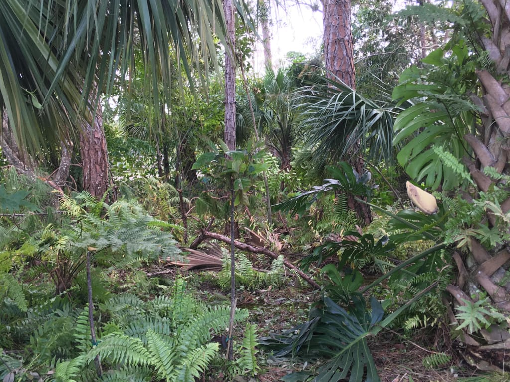 He rode the river to a random spot and went ashore. Mentally he noted the location by checking his compass and a map. The dense vegetation and numerous creeks made it difficult to reach a small clearing. He climbed a tree to observe the open space.
