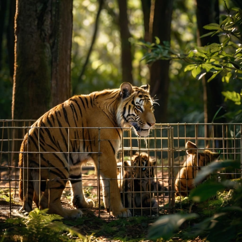 It was then that Saim realized—the tiger was a tigress. Her belly was swollen with milk; she must have cubs somewhere nearby. Judging by her strength, she had been trapped only a couple of days.