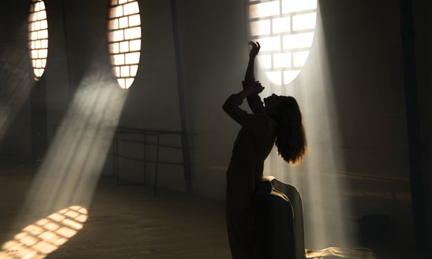 A light rain was falling outside and it was pitch black. Clara, wearing a cloak, brought an umbrella to shelter her husband from the rain.