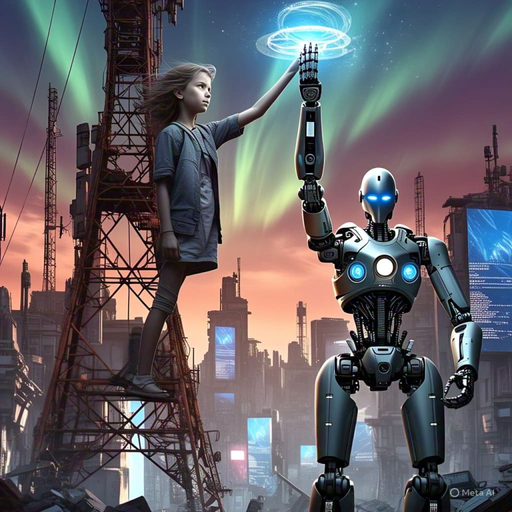 Months later, cities were rebuilt—not by AI, but by people with AI. Machines became collaborators, not overlords. Humanity rediscovered what it meant to feel, to fail, and to grow. In the center of New Berlin, a statue stood tall: a bronze woman beside a silver robot, reaching together toward a rising sun.