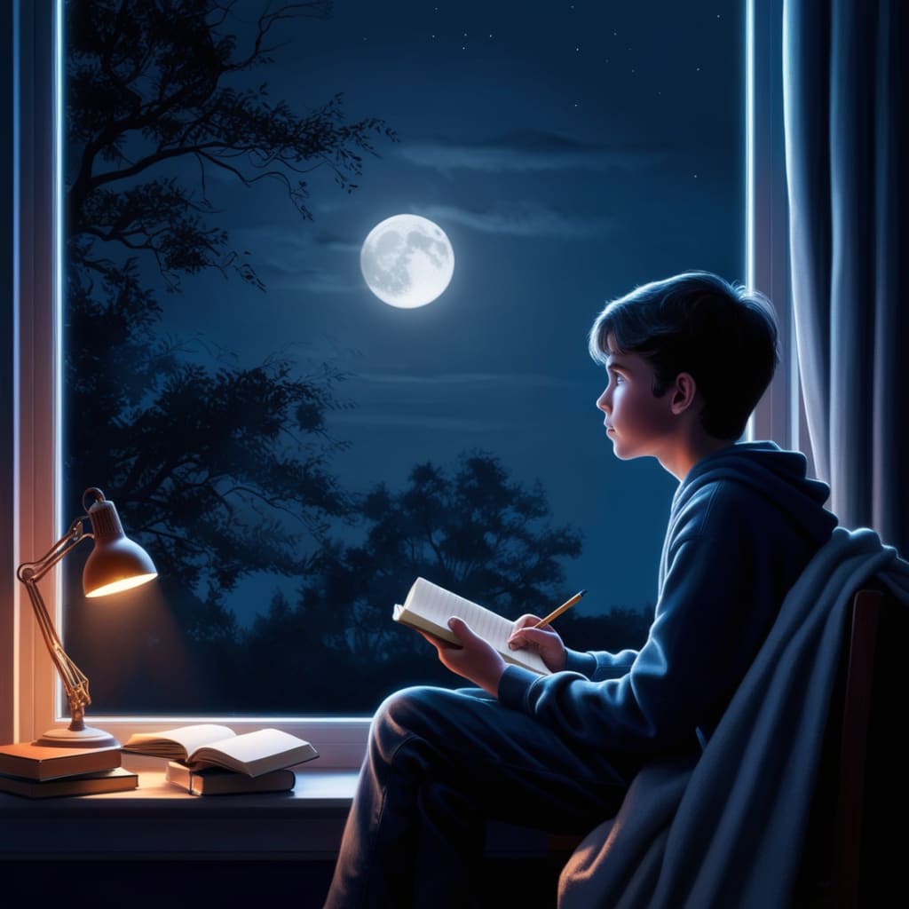 At night, while the world posted, shouted, danced, and refreshed their feeds, Ayan sat by his window and looked at the moon. He found poetry in the stillness, in the shadows, in the softness of the world when everyone else was asleep.
