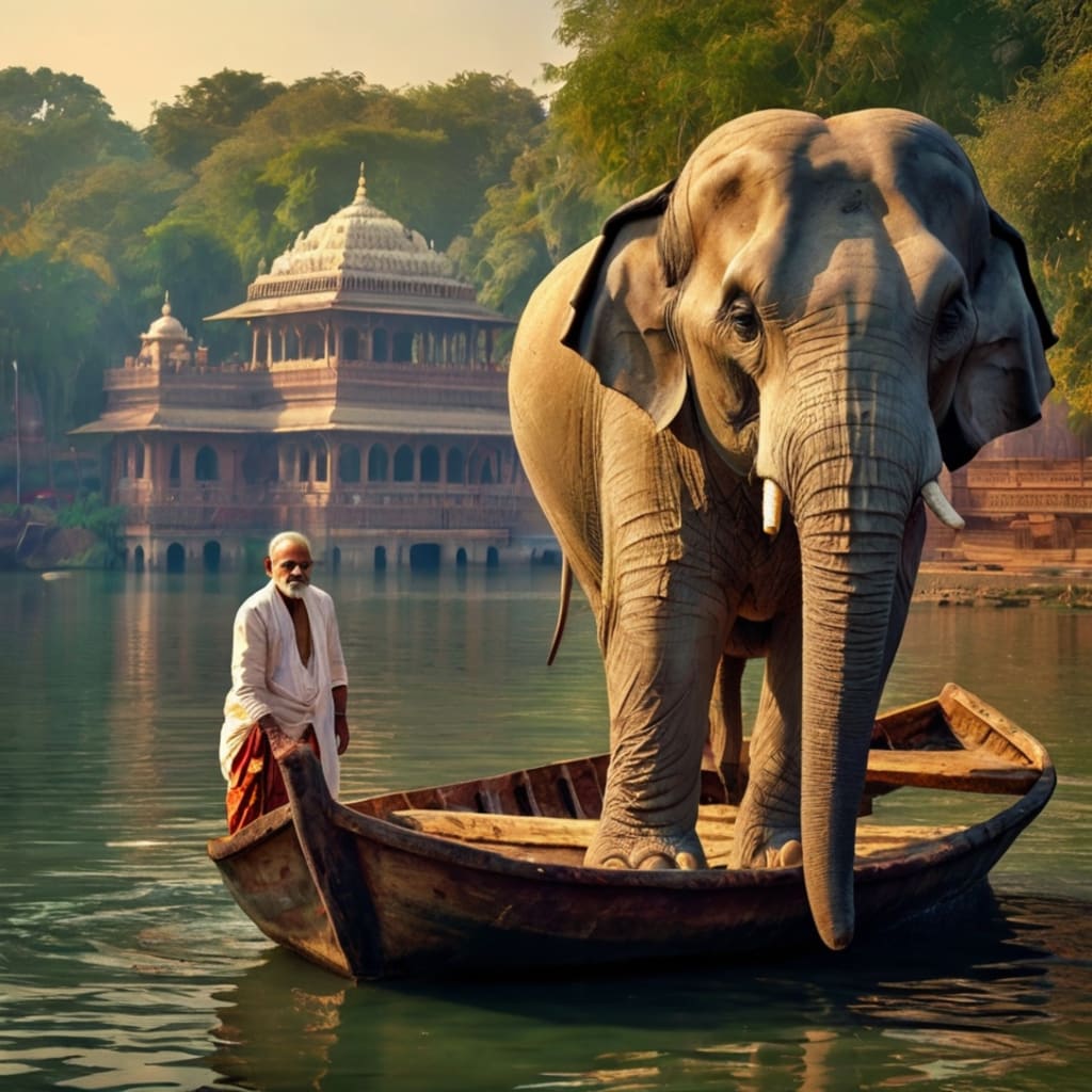 “Yes,” said the boatman calmly. “Bring the elephant to the river tomorrow. Place it on my boat, and let it float. We will mark the point where the boat sinks into the water. Then we will unload the elephant and load stones instead, one by one, until the boat sinks to the exact same mark. We will weigh the stones, and there lies your answer.”