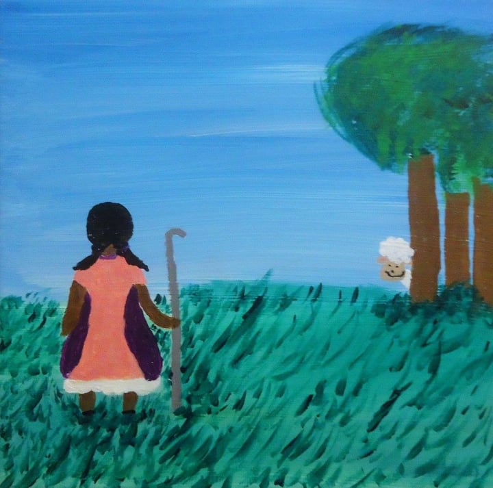Soon, the studio, in the wee hours of the morning, while the rest of the world was fast asleep, became my sanctuary. I can't explain why I only paint in the wee hours, it's just the way it is. I suppose it's because I've always been a night owl, preferring the stillness of night to the frantic bustle of daytime. Just me, a canvas, my wine and music and my paint. There's something about being in that space and the act of painting that transforms me from a middle aged woman with bills, worries and responsibilites into that innocently exuberant 4 year old girl I once was. I find myself painting from her view of the world. It's a much needed reprieve from the realties of day to day life and an opportunity to recharge and refuel my soul. Yes, my paintings look like a child did them, that's because in many ways, it's true.