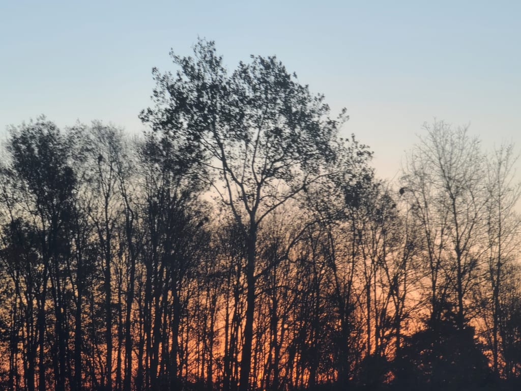 She stepped close to the window, pulled aside the curtain. Leaning against the sill, she admired the view in all its glory with the yellows and reds and oranges that resembled ribbons, stretching out like delicate fingers across the sky towards her.