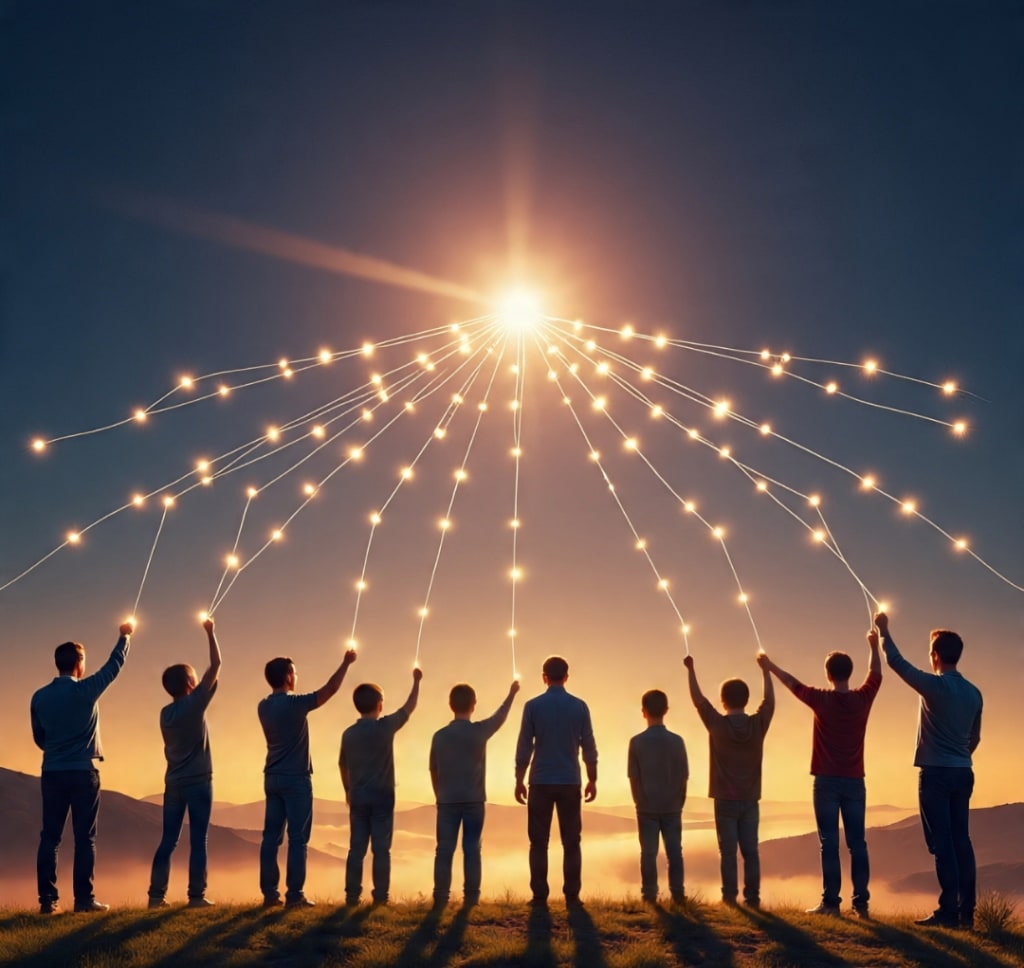 Humanity’s greatest achievements have always come from our ability to reach beyond ourselves. We are a species that thrives on cooperation. The vast cities of today are not monuments to a single person’s genius, but to the collective effort of countless hands and minds. Every bridge, every vaccine, every symphony is the result of shared ideas—the blending of creativity, labor, and love.