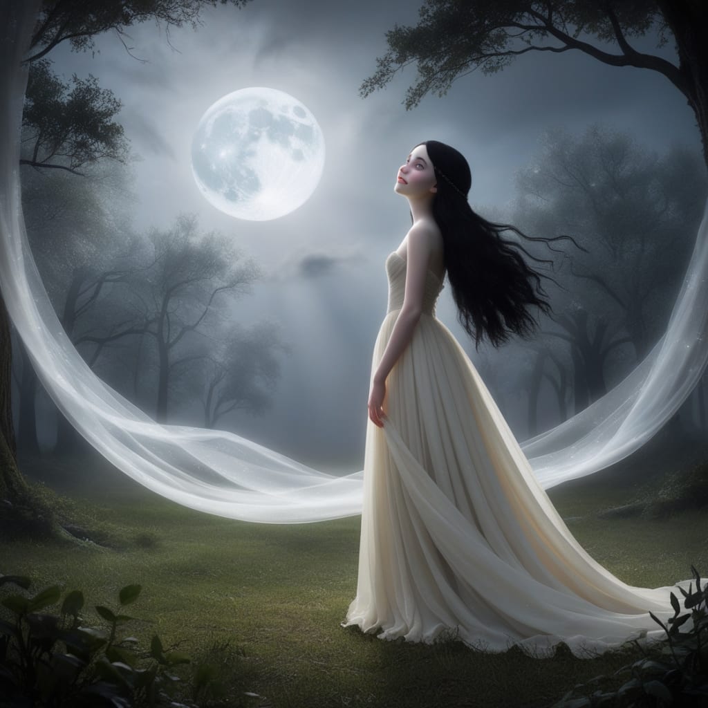 A girl. No older than me. Barefoot, standing silently in the clearing, the hem of her white dress glowing like mist caught in moonlight. Her hair was dark and tangled like the branches above us, and her eyes held a curious gleam, like she was searching for something—or someone. She didn’t say a word that first time. She just watched me, head tilted slightly as if trying to remember who I was.