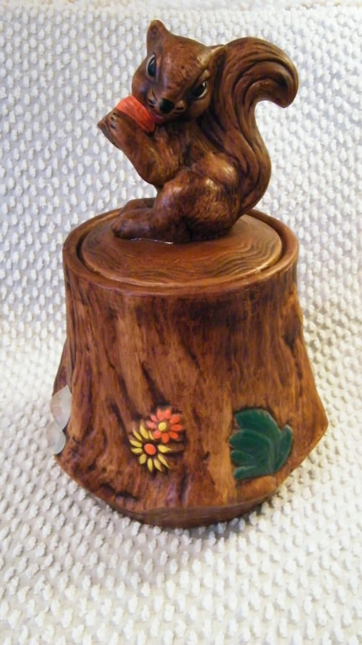 A little squirrely time-machine. As a side note, my husband thought I was crazy when I brought this cookie jar home and told me he doubted anyone would buy it. I took some pleasure in showing him the order only a few days later.