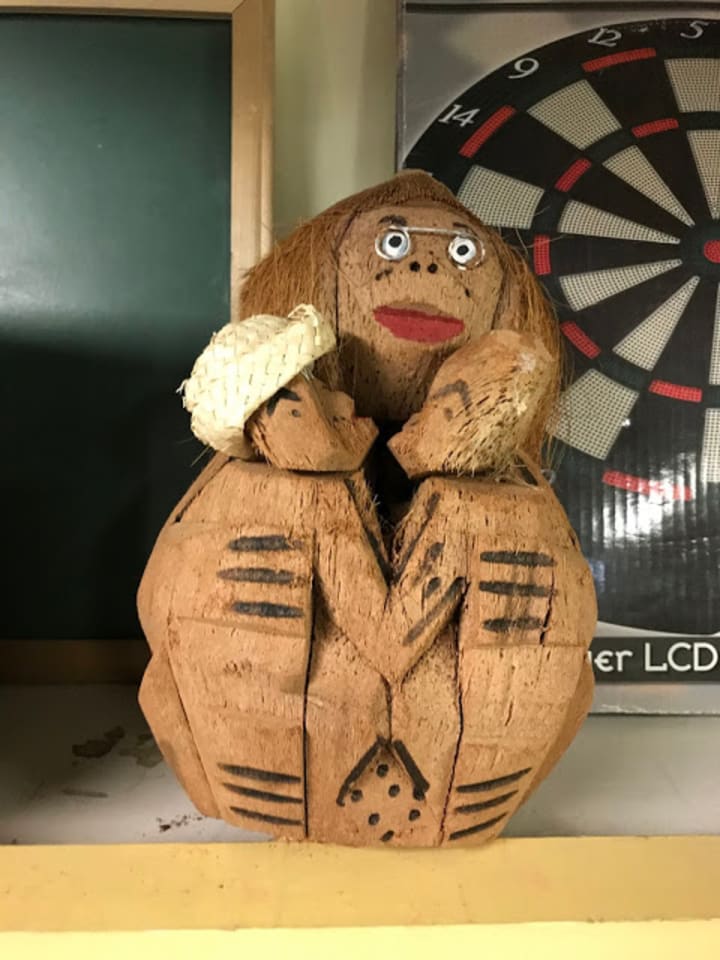 Of course, there are plenty of things at the thrift store that don't inspire any nostalgia or feelings of warmth. There's plenty of chipped glass-bowls, underappreciated gifts, outgrown toys, and ill-advised souvenirs that seemed like a good idea after your third Pirates Punch at the island tiki bar...see example below of a coconut minister marrying two coconut people.