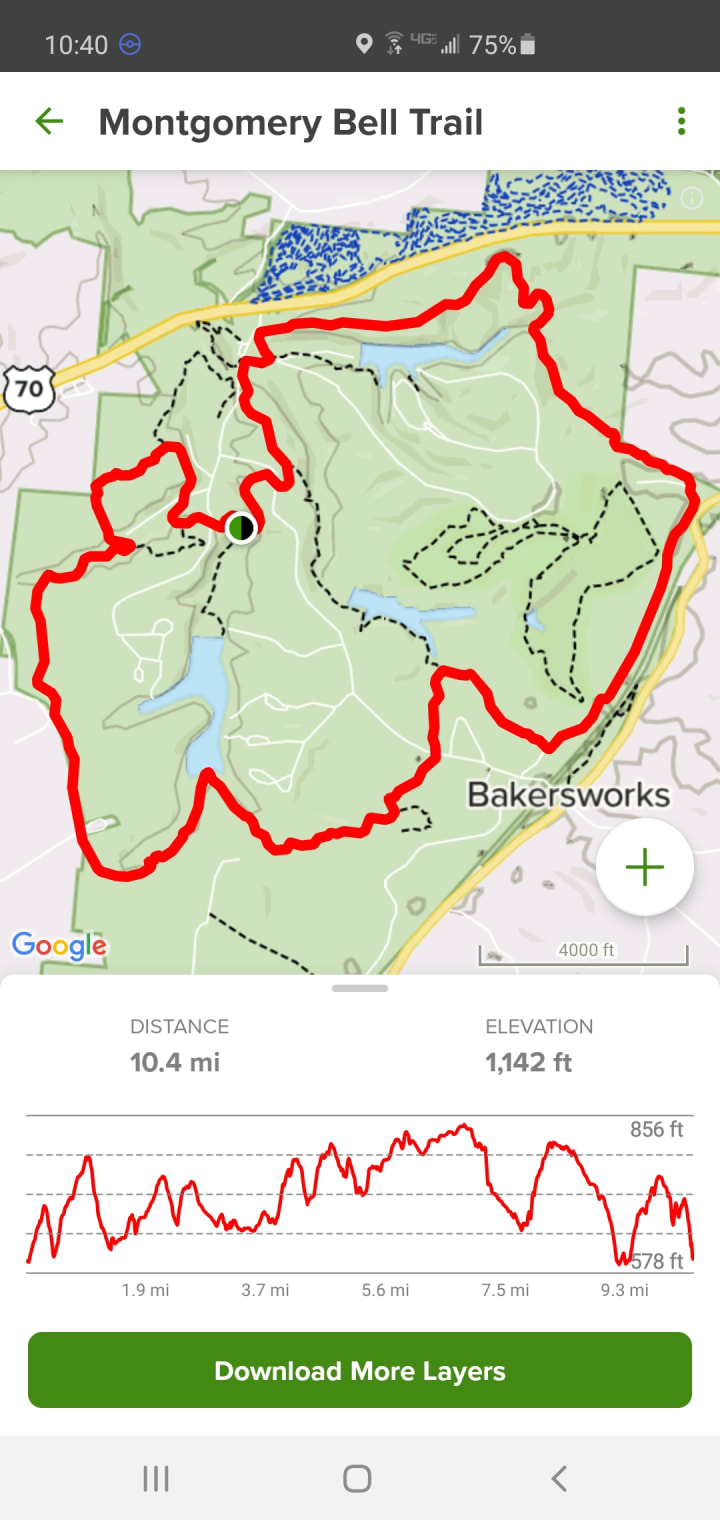 She and Pepper followed me out of the Welcome Center while I pulled up the All Trails app on my phone. I showed her the map of the trail and how we could take the Creech Hollow Trail as a shortcut if she wasn’t up for the full ten and a half miles. She agreed, saying that the full loop might be too much for her.