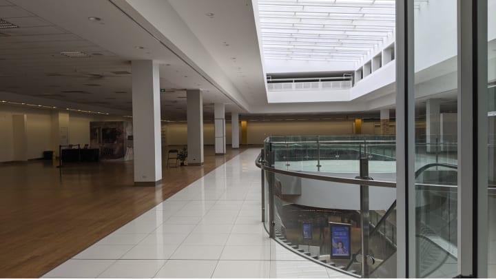 Gazing upon it conjures its whirring, hissing, clicking, and snarling, invoked by the soundscape that surrounds me. With so few objects in the museum left to look at, the bare, sweeping curves and archways of the white walls within the museum beg you to inhabit them, to follow the lines that they draw and seep into their smallest corners. It sounds different there.