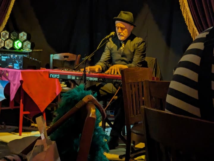 Thank you Mike! This is wonderful, thank you so much for coming along! Ps. Pink Flamingo lady is Louise, lady with a grin of Chester cat (she won my 'best dressed' of the night award is Elaine, man performing his original material by the keyboards is St.Dennis and later on we had a burlesque act by Trixie Blue and djing by me as DJ Lady Koo (instagram/Facebook: Lady Koo music)