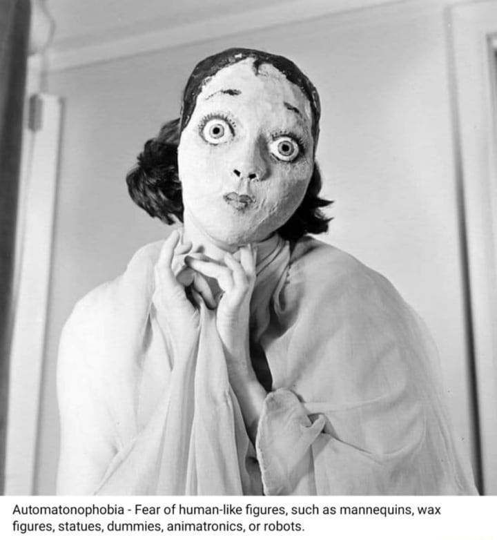 Automatonophobia is phobic fear of wax figures, mannequins, robots, and ventriloquist dummies. This phobia is related to an eerie feeling that these figures will come to life. Horror movies and urban legends do much to increase people's automatonophobia with things like possessed dolls and haunted statues.