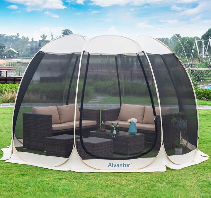 Alvantor's Screen House tent offers a spacious interior shelter that comfortably fits 2-3 adults. It features 360-degree ventilation for better dissipation of body heat and odor, and excellent views of the outdoors. Its fabric top provides all-day UPF 50+ UV protection against sunburn. The tent has a large entrance door with a double side silicone zipper and is easy to set up, making it a fantastic choice for outdoor life.