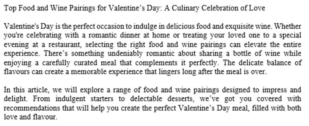 Valentine's Day is the perfect occasion to indulge in delicious food and exquisite wine. Whether you're celebrating with a romantic dinner at home or treating your loved one to a special evening at a restaurant, selecting the right food and wine pairings can elevate the entire experience. There’s something undeniably romantic about sharing a bottle of wine while enjoying a carefully curated meal that complements it perfectly. The delicate balance of flavours can create a memorable experience that lingers long after the meal is over.