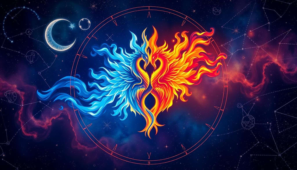 Understanding astrology compatibility sheds light on twin flame bonds. These bonds are marked by deep emotions, intense passion, and a sense of knowing each other. As I learn more about twin flames, I see how important twin flame guidance is. It helps us face the ups and downs of these relationships.