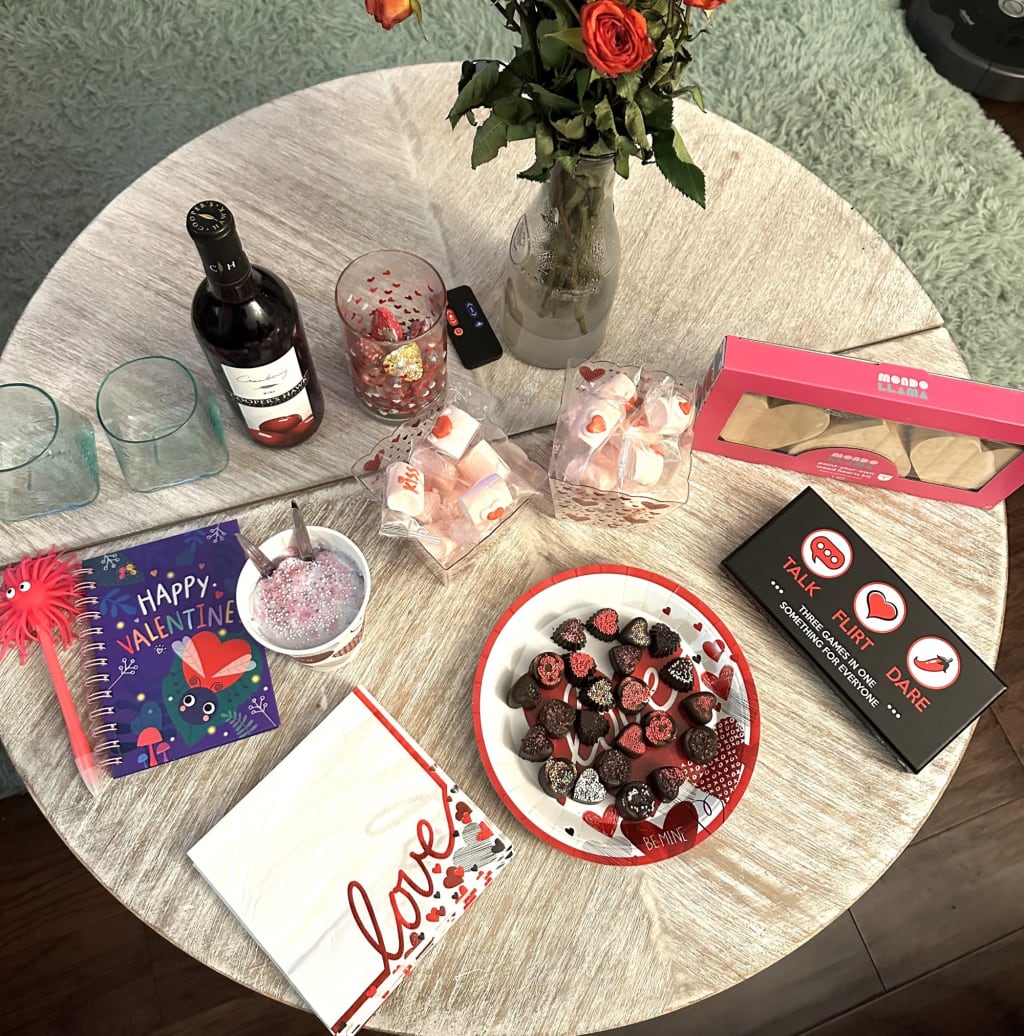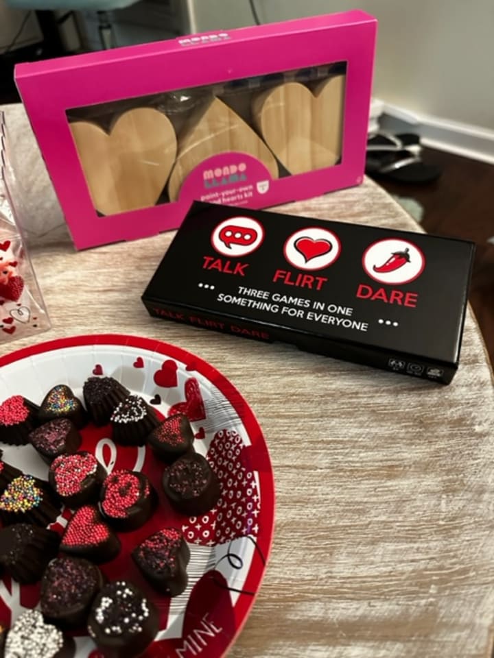 If you happen to be single and reading this, you can certainly have this date night solo -- minus the intimate game -- or with friends for a Galentine's night! The game featured in this post is similar to truth or dare so you can feel like a teenager again and get dared by your friends to crank call your crush. 😂