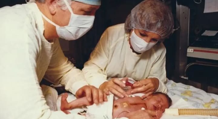 What happened when an American mother defied condemnation and transplanted a baboon heart into her newborn daughter in 1984